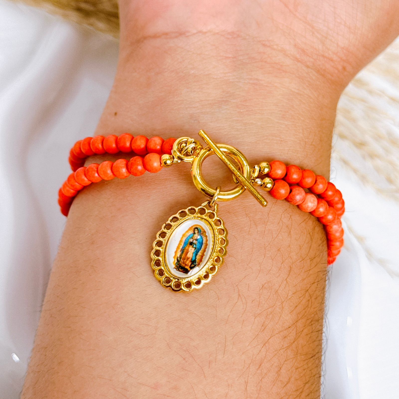 PULSERA NARANJA BROCHE T DE VIRGEN