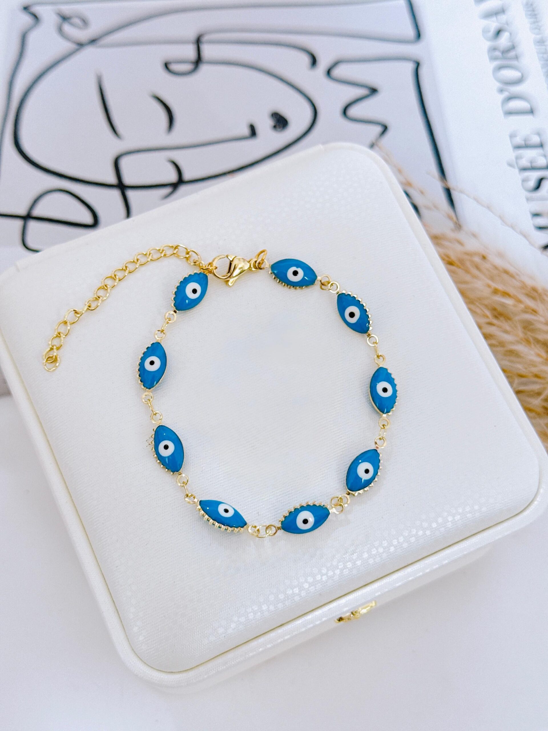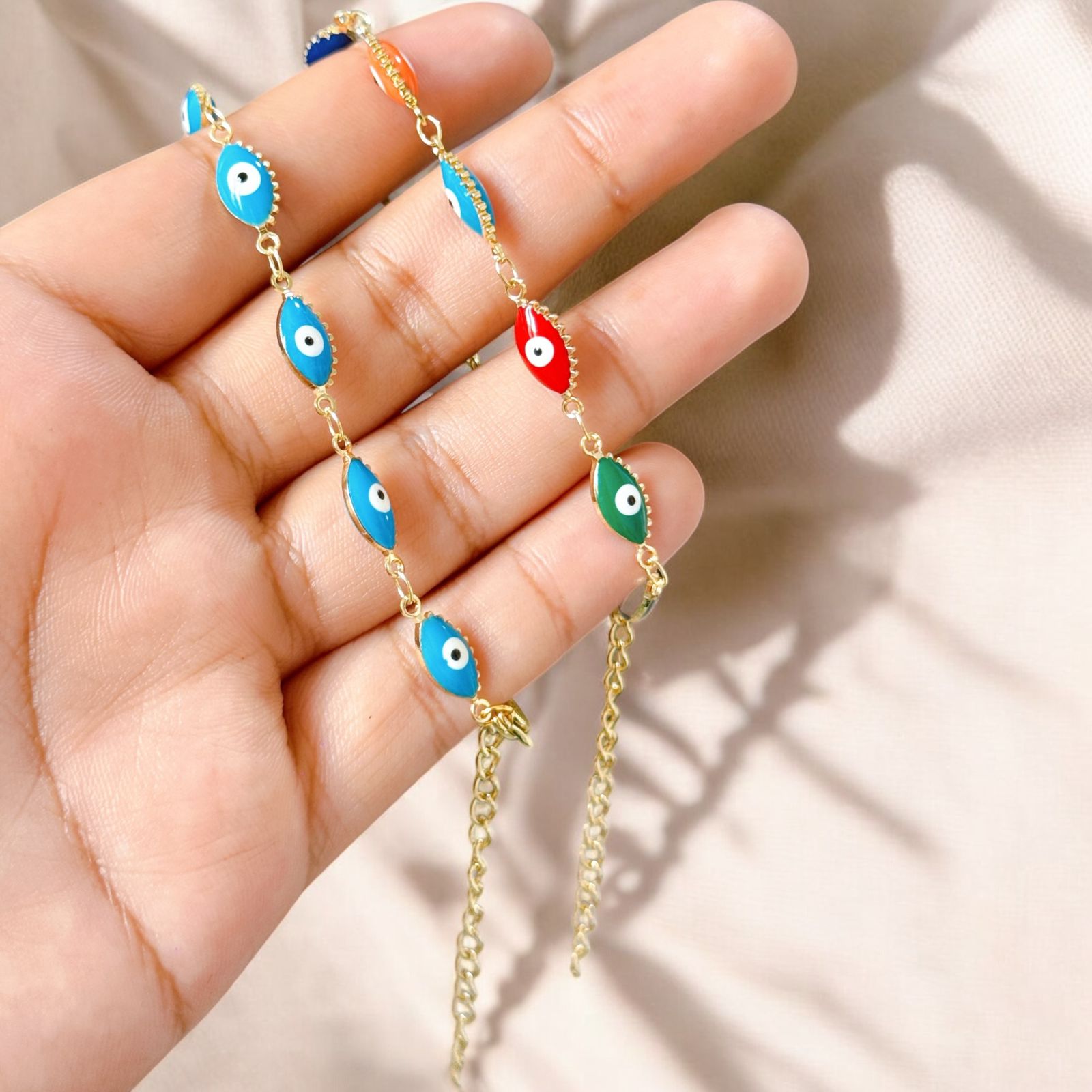 PULSERA OJO TURCO PESTAÑA MULTICOLOR & AZUL CIELO