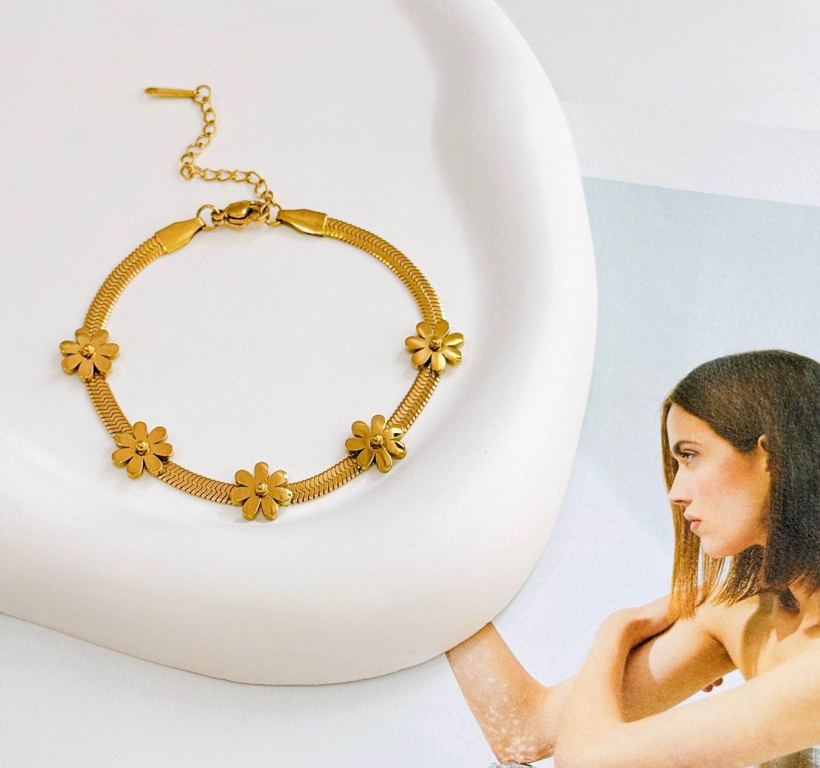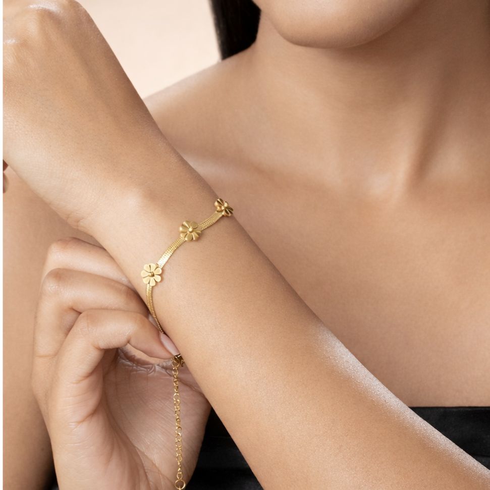PULSERA PANZA DE VIBORA CON FLORES EN DORADO