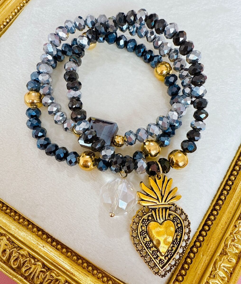 PULSERA SAGRADO CORAZON CRISTAL NEGRO