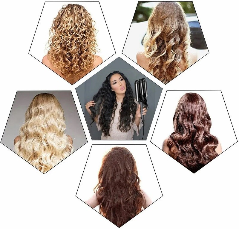 - Rizador de pelo ASCCC de 3 barriles, doble voltaje, temperatura ajustable, 25 mm