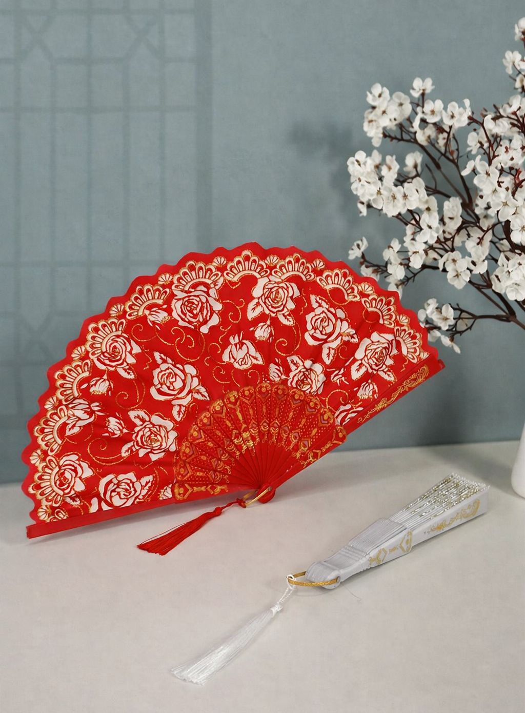 SET DE ABANICO CON FLORES M3 (12 PIEZAS)
