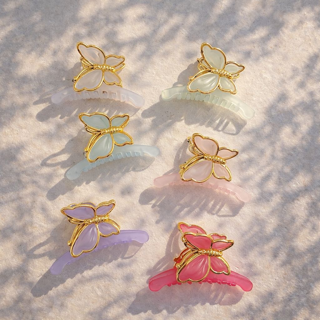 SET PINZA DE MARIPOSA CON BORDADO DORADO