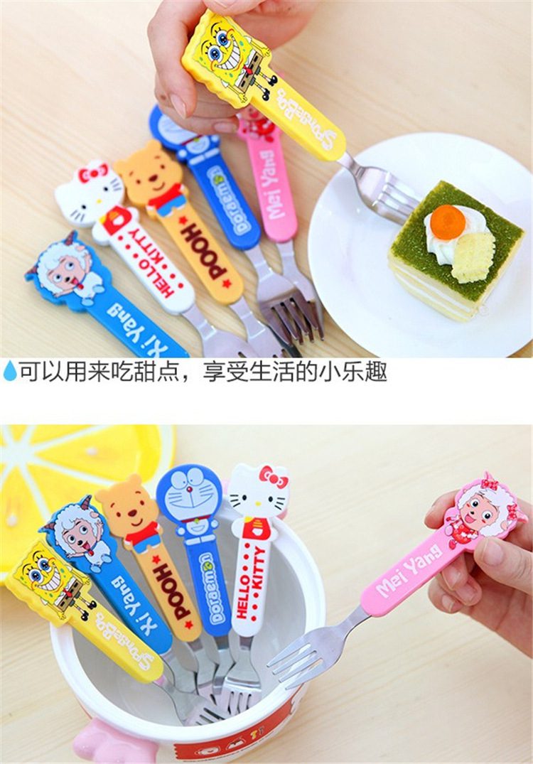 Trinche de acero inoxidable con mango de plástico y diseño animado.